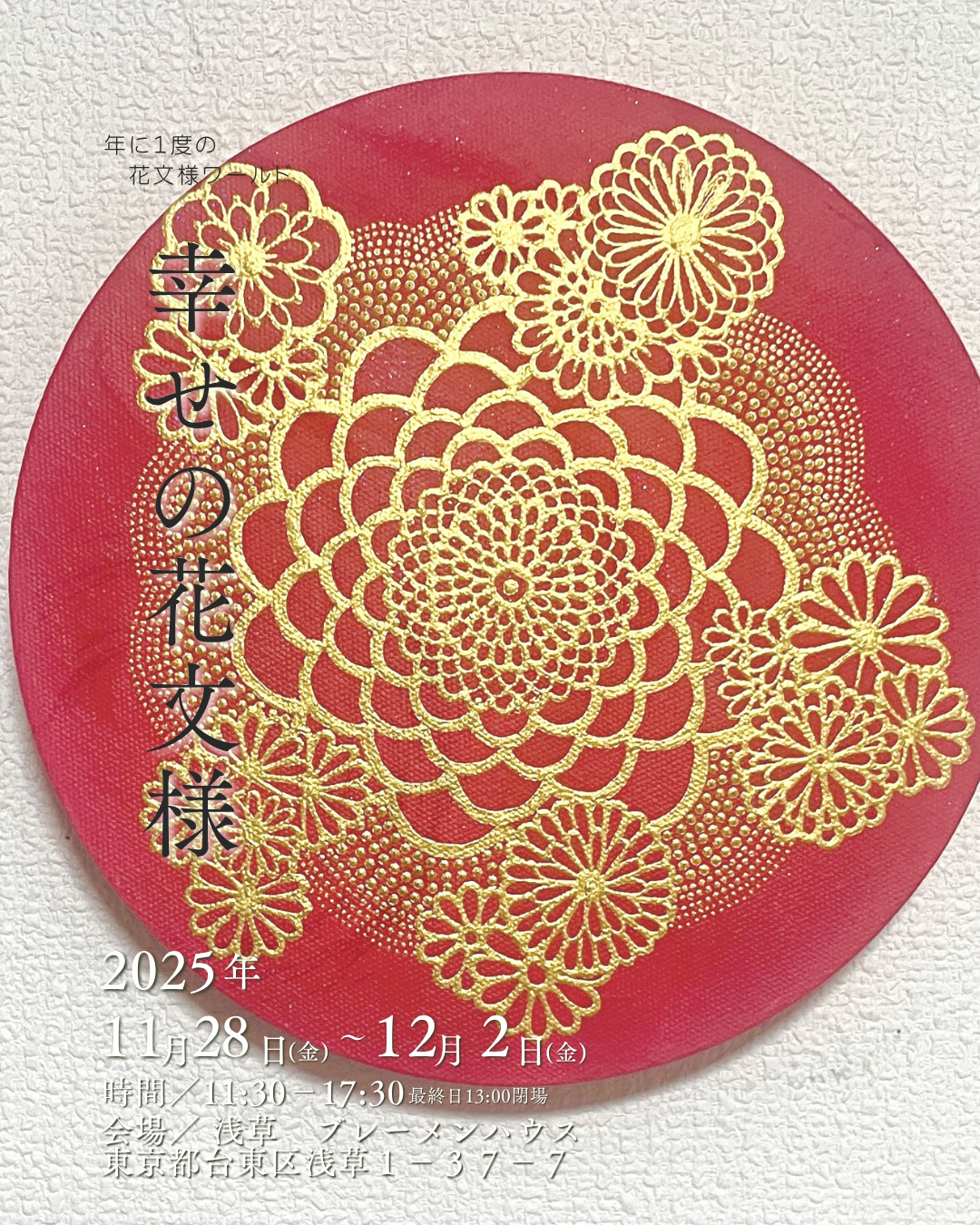 火、木、土、日で在展しております。 また、展示会場で、名刺サイズに、目の前で花文様のお書き上げイベントもさせて頂きます。 お手持ちの物にお書き上げサービスもやらせて頂きます。 皆様のご来場をお待ちしております。